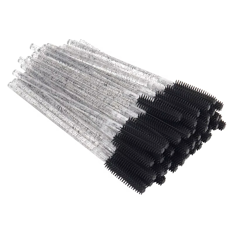 Set de 50 periuțe mascara de unică folosință, maner cu sclipici, ideale pentru extensii de gene și aranjarea sprâncenelor.