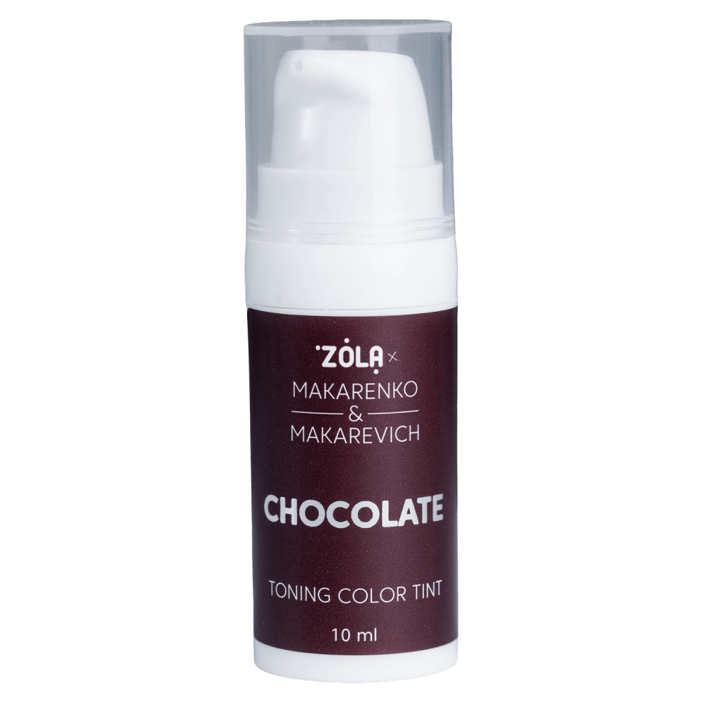ZOLA x Makarenko x Makarevich Toning Color Tint CHOCOLATE este o mască colorantă pentru sprâncene, concepută pentru a menține o culoare maro intens. Produsul face nuanța mai saturată, mai uniformă și adaugă densitate vizuală sprâncenelor.